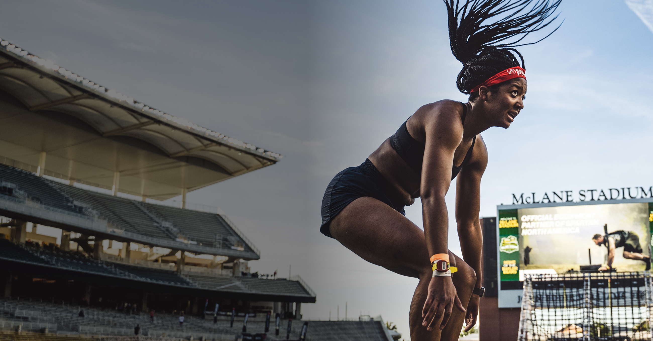 Stadion is a 5K obstacle course packed into legendary arenas. You’ll climb stairs, scale walls, be challenged by various functional fitness obstacles, conquer monkey bars, and aim true with the spear throw — all at race pace.
